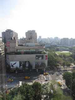 Dad had to go to work for a meeting so Mom and I had the first part the day to ourselves. We stopped for a moments rest after lunch, then wandered the busy Taiepei streets. We got some coffee and spent sometime in the green space by our hotel. There are not a lot of parks that I've seen so far, so we're fortunate to have a lovely green space close by, which you can see in the pics.